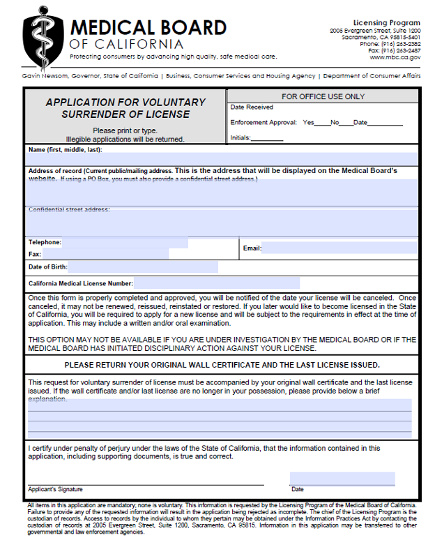 Importantly, many applications (other medical license applications, applications for hospital staff membership/clinical privileges, etc.) ask if you have ever “surrendered” your license. Such questions typically ask whether you surrendered your license while under investigation.